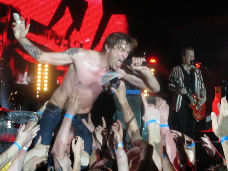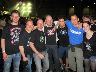 | - standesgemäß ging es richtig Punkrock-mäßig mit dem Taxi direkt vor die Halle, Bändchen für die erste Welle besorgt - (DANKE an die beiden Organisatoren) und dann ging es auch schon mit KOPEK los. Die Stimmung war erstklassig und das ganze gejammere von Campino über den Abstieg der Fortuna quititerte ich mit dem hochhalten meines erstklassigen Shirts - was ihn aber auch freute! - |