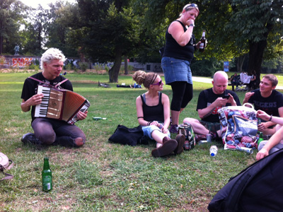 | .. Es gibt Momente im Leben, die kann man nicht ohne weiteres wiedergeben - die Zeit vor, während und nach dem Konzert im Huxleys gehört dazu. Es war einfach nur großartig. Die richtigen Menschen, am richtigen Ort, zu der richtigen Musik und alles hat gepasst. Mit dem Fernbus ging es ganz entspannt in die alte Heimat nach Berlin. Vergessen war der Stress um an die personalisierten Tickets zu kommen, vorbei das Theater um das Umschreiben des zuviel gekauften Tickets. Vergessen der Rauswurf aus der Bandgarderobe, vergessen wie und warum ich da überhaupt eingeladen wurde. Vergessen auch vorher schon die Kamera, danke SUSI LAUTUNDWILD für deine tollen Fotos. In der Halle, wo ich vor 25 Jahren noch in der Rollschuh-Disko war und mein erstes Eisgetränk zu mir nahm (Slush?), gab sich also meine Lieblingsband die Ehre. Eine grandiose Setlist, ein grandioses Publikum, ein grandioser Abend. Vor der dem Konzert wurde in der Hasenheide gefeiert, nach dem Konzert auch und in verschiedenen weiteren Lokalitäten. |