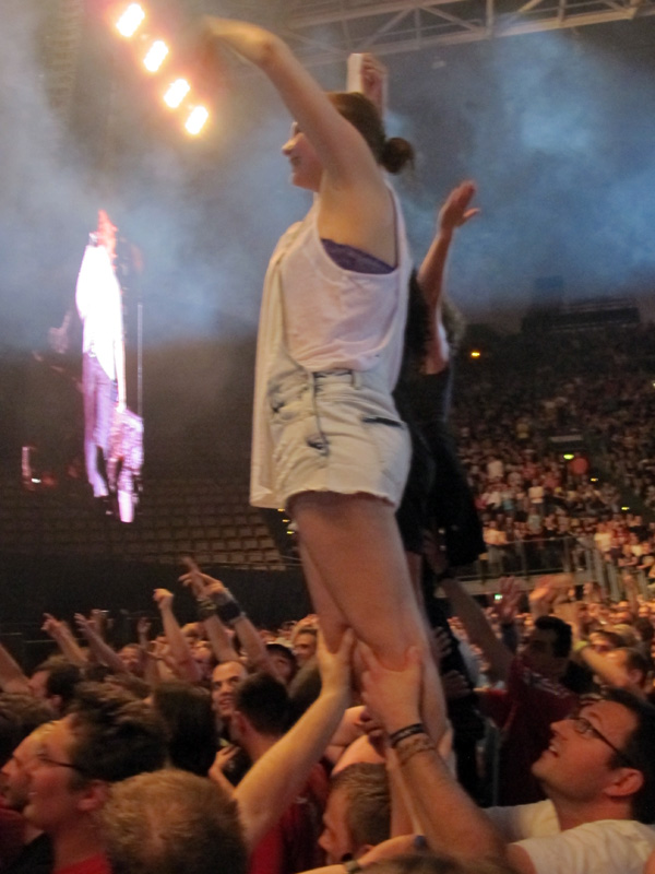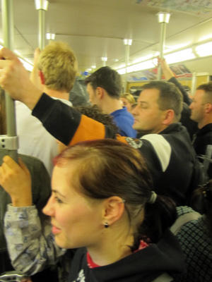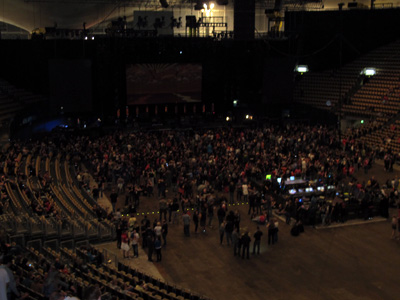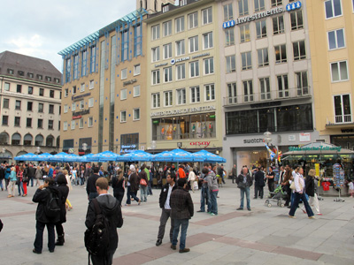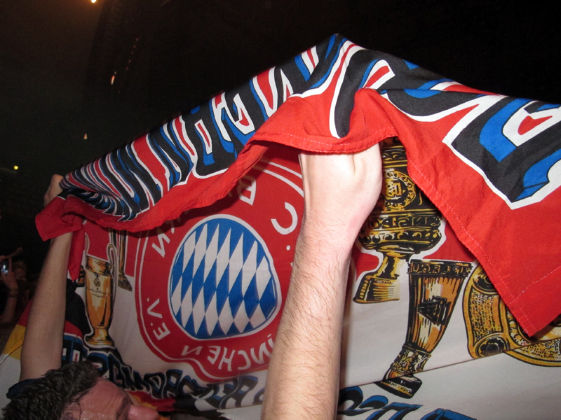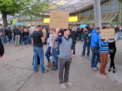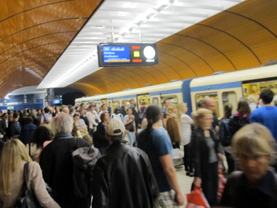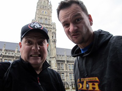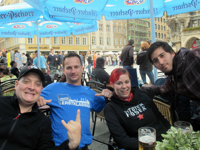 | . Mit Mariemachmalauter als Co-Pilotin ging es in die bayerische Landeshauptstadt. Nach dem Motto der Weg ist das Ziel machten wir noch eine kleine Rundreise über die Dörfer um eine Tankstelle zu finden, da der Pilot die Autobahn-Tankstellen einfach ignorierte und der Spritvorrat sich aber einfach so gegen null bewegte. Die kleine Tanke war natürlich total überfüllt und es herrschte die Ordnung, Einheimische zuerst und der Rest muß warten. Kurze Eskalation mit einem 150 Kilo Kojak und dann ging es auch schon weiter. Die Überlegungen, ob man an der Halle parkt oder an der Arroganz Arena und dann P+R nutzte, zogen sich über die ganze Fahrt, da es keine wirkliche Einigung gab, entschied das Auto. Wir parkten also günstig für einen Euro an der Arena, wir hätten aber auch lügen können und behaupten, dass wir die Arena besuchen würden, dann hätte das Parken 8,00 Euro gekostet. Als wir vom Parkdeck Richtung U-Bahn liefen, wir hatten natürlich am weit entferntesten Ende geparkt, kamen uns tausende Menschen entgegen. An der U-Bahn angekommen wussten wir auch warum: SCHIENENERSATZ-VERKEHR! Also wieder retour Richtung Auto, denn da war auch die Bushaltestelle. Also mit dem Bus Richtung Innenstadt, dann wieder in die völlig überfüllte U-Bahn, zustände wie in Tokio. Ständig Durchsagen was alles nicht geht, irgendwie lag München an Tagen wie diesem lahm. Wir fuhren zum Marienplatz, wo wir uns mit den Südamerikanern, Fausto y Alex und Mampffred trafen. Kollege M-Bäck stieß auch noch dazu, der durfte aufgrund der ausgefallenen S-Bahn quer durch München laufen. Nach zwei Hellen ging es auch schon weiter Richtung Olympiahalle. |