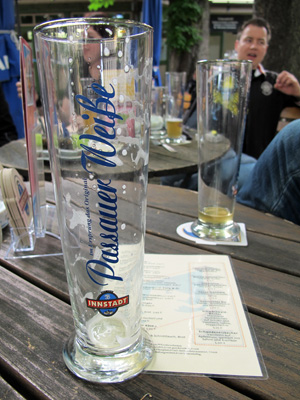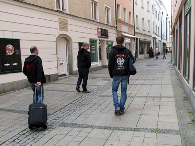 oder der Weg ist das Ziel Mit dem Auto ging es in´s 320 km entfernte Passau. Gegen 16:30 Uhr erreichten wir die Halle und die ersten Leute belagerten schon die Eingänge, um sich die besten Plätze zu sichern. Wir parkten das Auto direkt vor der Halle und machten uns dann auf den Weg in die Innenstadt, wo die anderen Boludos in einem Biergarten auf uns warteten. Also flott in den erstbesten Bus gehüpft und dem Fahrer gesagt er soll in den Bayerischen Löwen fahren. Der hat uns kurzerhand zur Familie erklärt, so dass wir ein günstiges Familientagesticket kaufen konnten. Denn die Hosen Tickets enthielten keinerlei Berechtigung die öffentlichen Verkehrsmittel zu nutzen. Keine hundert Meter vom Busbahnhof entfernt lag der Biergarten "Bayerischer Löwe" wo die Boludos auf uns warteten um gemeinsam zu Essen. Kosmas wartete schon den ganzen Tag auf eine Knusprige Schweinshaxe, als wir diese dann bestellten war diese natürlich aus. Dumm gelaufen, hätt´ste mal nicht gewartet ;-) Bereits vorher waren Anna und Eva dort und aßen "schnell" einen Camenbert (Wartezeit 1 Stunde). Also wurde auf andere leckere Gerichte und Russische Getränke ausgewichen. TomTom hatte noch seinen "Biergartentour-Rollomat-2000-Koffer" dabei und wollte noch fix ins nahegelegene Hotel einchecken. Nahegelegen wäre es gewesen, wenn man den direkten Weg gewählt hätte, jedoch hatte Kosmas zielstrebig den größtmöglichen Umweg gewählt, so dass wir auch den Dom von allen Seiten aus allen Richtungen mal gesehen hatten. Im Hotel angekommen erwartete den Luxus-Punk ein Luxuszimmer mit Sektempfang. Danach ging es auf dem größtmöglichen Umweg zurück zum Busbahnhof um dann mit dem Bus pünktlich zum Einlass an der Dreiländerhalle zu sein. Und merke: Am Bahnhof fahren die Züge und am Busbahnof oder ZOB die Busse!!! - |
