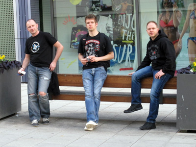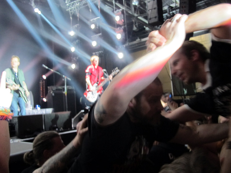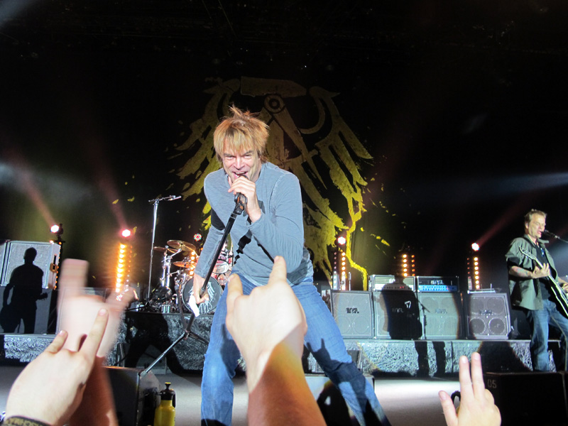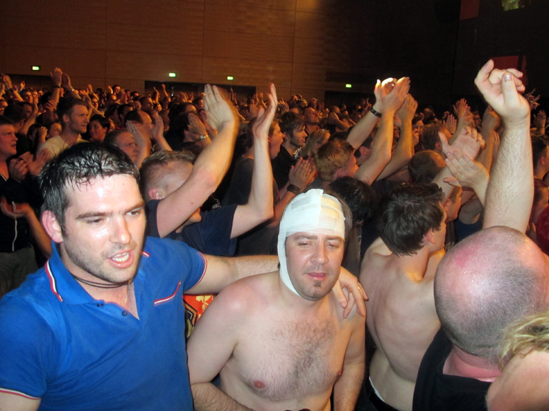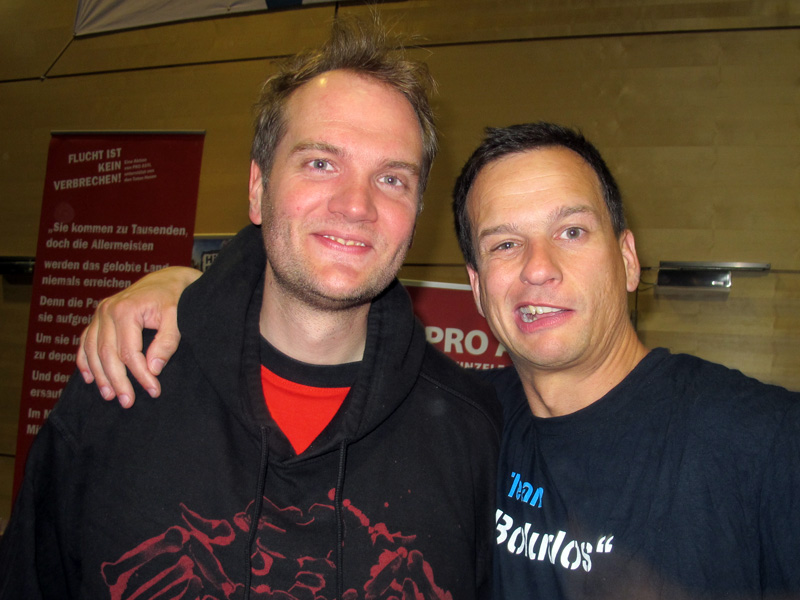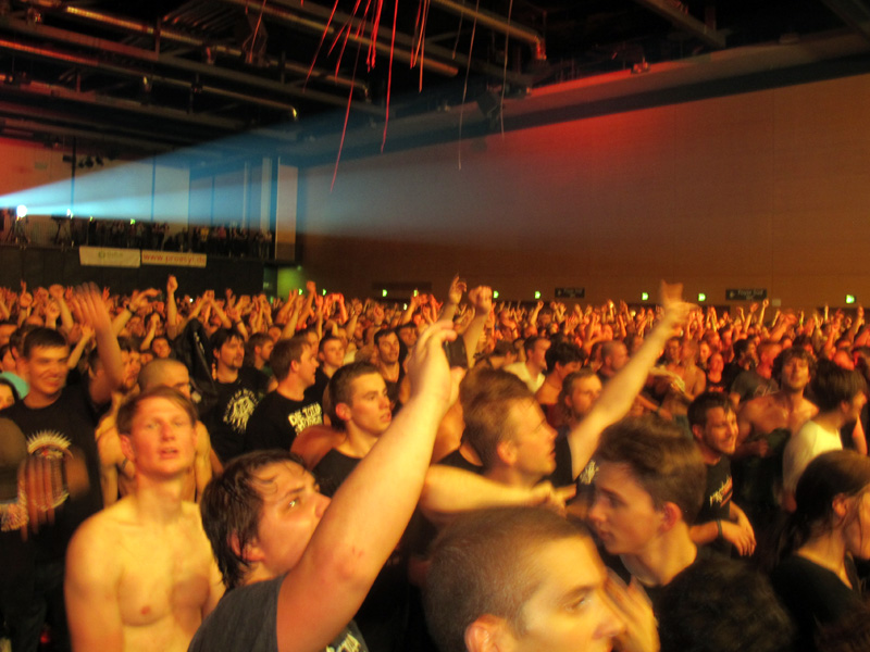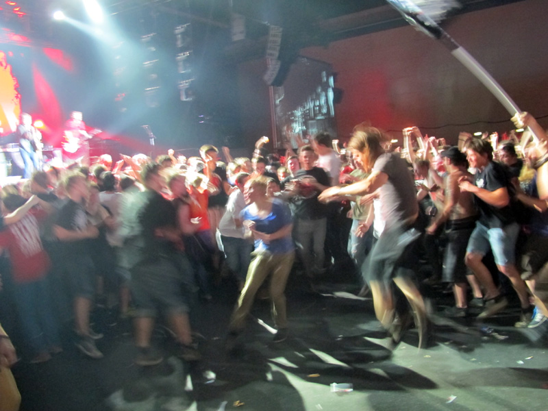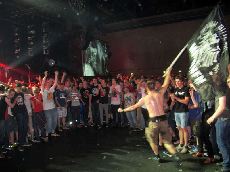 | - Da es keinen Wellenbrecher gab, jedenfalls habe ich keinen gesehen, tranken wir draussen noch Fix ein Bier. Wartezeit auch etwa eine Stunde, da die Getränkeversorgung mal wieder diskussionswürdig war. Marie scheiterte mit ihrem Charme am Tresen, so dass TomTom tatkräftig unterstützer und wir kurz vorm einsetzenden Regen und starten der Vorband "Kacka" oder so in die Halle starteten. Ich war noch mal schnell in der Keramikabteilung und verpasste die Vorband, war aber pünktlich wieder vorn dabei, so dass die Party starten konnte. Wir wollten vorne links warten, bis die Massen in Bewegung kommen um dann ins Epi-Zentrum vorzudringen, doch mit den ersten Tönen der Intro gabs kein halten mehr und wir bahnten uns unseren Weg nach vorn mitte. -- Das Passauer Publikum war relativ geschmeidig, es gab zwar kleinen Pogo und das übliche Geschiebe, aber alles im Rahmen, so konnte man entspannt ein paar schöne Bilder machen. Ein, zweimal Crowdsurfen und schon war die Party wieder vorbei. Anschließend ging es direkt wieder mit dem Auto heim, nachdem trockene Shirts angezogen wurden. Kurz im Erlanger Ghetto gehalten, allerdings waren die brennenden Tonnen schon aus, der Pöbel geht dort auch früh schlafen, Marie sicher abgeliefert und dann zuhause nach einem gute Nacht Gläschen Vogelfrei ins Bett gefallen! - |