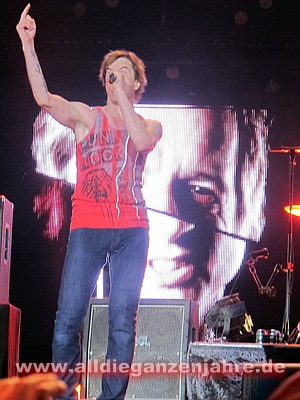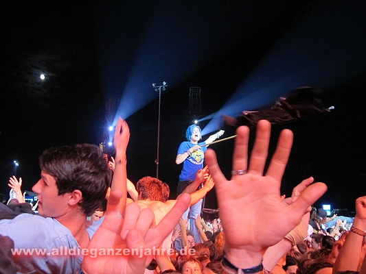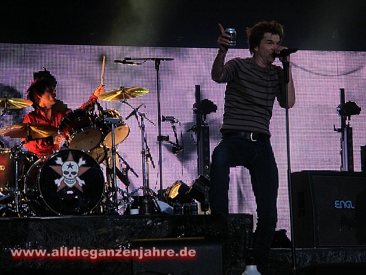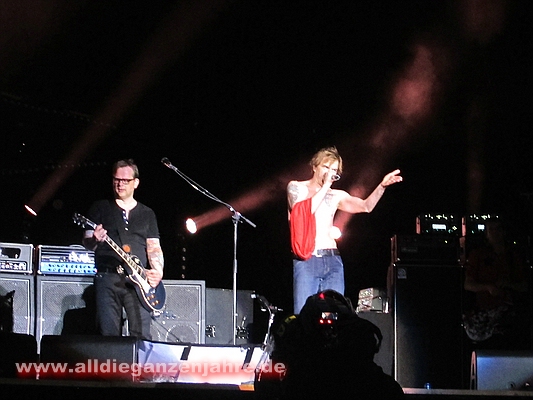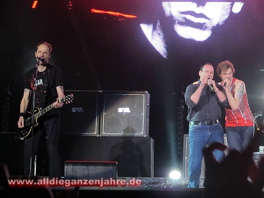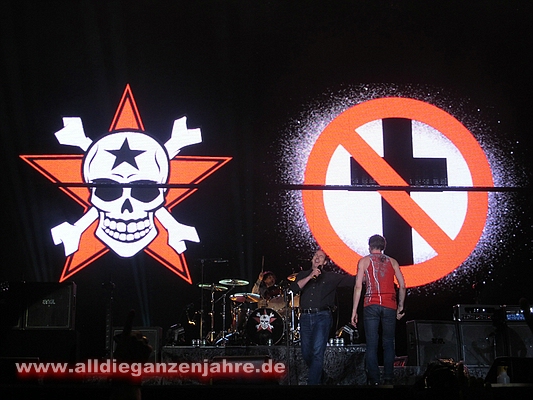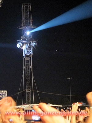 Bei pushed again brannten Bengalos im Innenraum, Campino meinte danach nur, es sollte besser unterlassen werden, da man ansonsten zwei Wiederholungskonzerte in der leeren LTU-Arena geben müsse. Ansonsten sah es von oben wohl ganz gut aus. Es war auf jeden Fall heiss und es stank bestialisch. | |