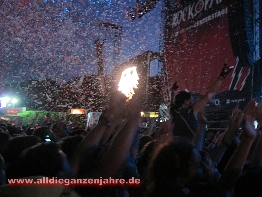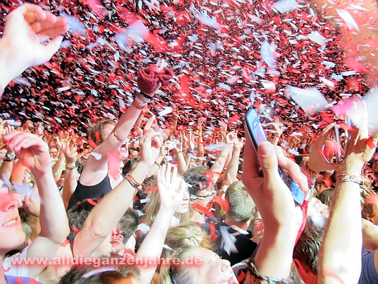 "An Tagen wie diesen" wurde ordentlich abgefeiert und von der Bühne wurden riesige Konfetti-Kanonen gezündet, kannte man früher nur von "Walk on" | |