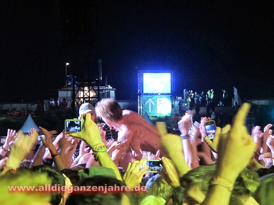 machte sich Campino auf den Weg übers Publikum zum Tonturm zu kommen, um