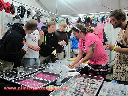 ![]() - der liebe Herr Schande macht Druck, den hat er nach der Show auch wieder abgelassen, als ihm ein begeisterter Fan die Setlisten aus der Hand gerissen hatte. Mit einem gestreckte vorwärts-Salto sprang Schande über die Absperrung und man fragte sich, wie frisch die Tollwut-Imfpung noch ist. Die anderen Sicherheitsleute schützen aber den armen Fan davor, dass Schande ihm direkt in den Hals biss... - |