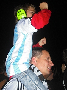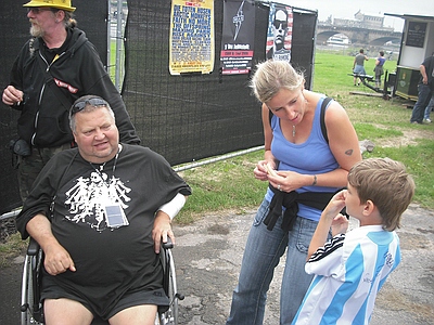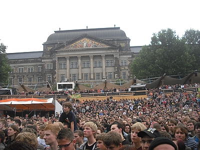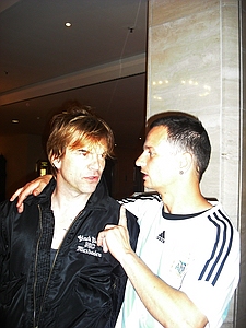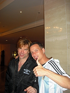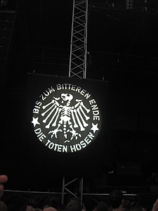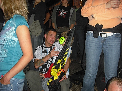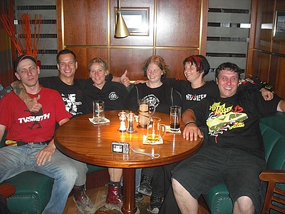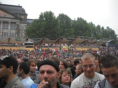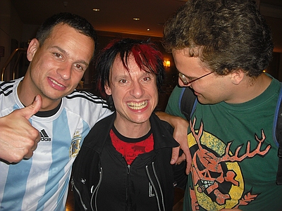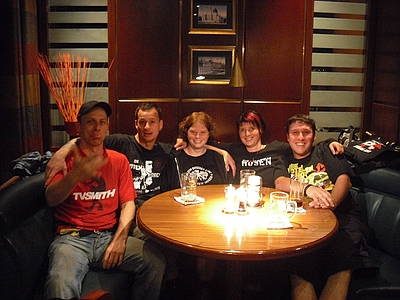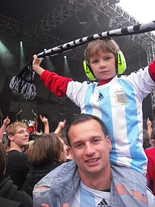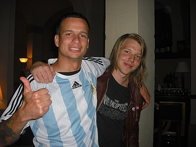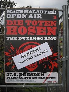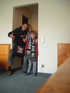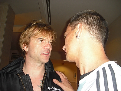 | Dresden Elbufer 26.06.2009 Ein Wochenende mit Höhen und Tiefen Das wir ja ein First-Class Wellness Hotel gebucht hatten, ist uns erst wieder eingefallen, als wir am Freitag Nachmittag eingecheckt haben. Also hieß es nach dem Umziehen erst mal in die Stadt und Badesachen für den Pool kaufen. Nach dem wir einige Fachgeschäfte abgeklappert hatten und auch der Bikini für Angela endlich beschafft war, machten wir uns wieder auf den Weg zum Elbufer. Dort trafen wir bereits die "verrückten" aus der ersten Reihe, Marco und Sabine, sowie Tobi und Mallowy. Die Wiese am Ufer der Elbe füllte sich zusehenst. Angela beschloß das Konzert vom Bierstand aus zu verfolgen, Sebastian und Ich machten uns mal wieder auf den Weg in die ersten Reihen nach vorn links. Dort trafen wir TomTom und natürlich auch den Voigtländer, der mich großzügig mit Bier versorgte, da werde ich mich allerdings in Berlin revanchieren. Wir hatten aufgrund der vergangenen Dresden-Erfahrungen 20 Regenponchos gekauft, doch wir brauchten sie nicht, denn der Wettergott meinte es gut mit uns. Andy und Sven stiessen dann auch noch dazu und auch einige Wegbegleiter aus Argentinien kreuzten unsere Wege. Das Konzert an sich war ganz ok, aber der nächste Tag sollte ja alles übertreffen. Nach dem Konzert gingen wir noch mit einer größeren Gruppe in unsere Hotelbar. Dort tranken wir noch ein paar gut Nacht Bier und die Gruppe löste sich langsam auf. Angela ging ins Bett, wo Sebastian schon lange schlief. Ich machte mich dann noch mit Sabine und Peggy auf den Weg in die Nacht und wir endeten in einem Hotel, wo wir noch andere Hosen-Freunde trafen, Tobi, Mallowi, Schnitzel, Reissi, Schelsi und doktore_rade und weiß der Geier wer noch alles. Wir tranken die Bar leer und irgendwann kamen Campino und Vom in selben erbärmlichen Zustand wie wir in das Hotel, es war noch kurz sehr witzig und die Nacht war zu ende. und so hat es Angela gesehen: wir sind ja direkt nach der Schule los, hatten auch schön den Stau mitgenommen, man gönnt sich ja sonst nix. Als erstes ins Hotel, Lage checken und in die Stadt, Badesachen kaufen, gab ja nen Pool, der sich eigentlich als größere Badewanne outete, aber man konnte in einem kleinen Kreis schwimmen. Wir waren dann gegen 18:30 drin und haben erst einmal Faust getroffen und bestimmt fast eine halbe Stunde mit ihm gequatscht. Ich finde ihn ja echt super, und gut drauf war er auch. Dananch standen wir auch gleich vorne links mit drin, ich aber nicht lange, wurde mir nach der Vorband doch etwas eng. Der Iro ist dann auch ziemlich schnell mit Sebastian nach links aussen verschwunden, wurde wohl doch etwas hart da vorne. Ich habe mich dann am linken Bierstand geparkt und hatte eine eigentlich ziemlich gute Sicht, so über alle Köpfe weg. Die Stimmung bis ganz nach oben war der Hammer, die Leute haben da abgefeiert, der wahnsinn. Vom Anfang bis zum Ende. Das Feuerwerk war auch echt Klasse, leider hatte Campino davon wahrscheinlich am meisten mitbekommen, hätte davon gerne mehr gesehen. Die Aktion von den Ultras mit den Bällen war auch wieder super. Nach dem Konzert noch mit ein paar Leuten in der Hotelbar abgehangen. Iro war mit Sebastian schon mal mit dem Taxi vorgefahren und hat Sebastian brav ins Bett gebracht, machen ja bekloppte Eltern so. Extremo und Andi sind dann nach Hause gefahren und Iro, Sabine und ihre Freundin sind dann noch ins Hotel, indem die Band untergebracht war. Abgemacht war natürlich: nicht so lange. Das war um halb zwei in der Nacht. Gegen 5 Uhr morgens machte ich mir dann schon Sorgen, es sollte ja auch ein chilliges Familienwochenende werden. Ich rief an, man drückte mich weg. Im selben Moment versuchte doch jemand verzweifelt diese Scheiß Chip-Karte für die Tür in dieses Scheiß Fach zu stecken, vergebens. Ich machte auf und vor mir stand ein voll abgefüllter Iro mit einem Kumpel, den ich an diesem Tag auch erst das erste mal zu Gesicht bekam. Ich war da schon etwas sauer aber diskutieren, jetzt, -> Zwecklos!!! Dieser Kumpel schlief auch bei uns im Bett, war ja groß die Kiste. Meine Nacht war gelaufen. Um halb sieben musste der Kumpel kotzen und fand unser Bad nicht und wollte sich gerade unseren heiligen Hotelmülleimer nehmen. Ich also schnell hoch und den armen ins Bad begleitet und sich seinem Schicksal überlassen, Licht habe ich ihm dann auch noch gemacht, fand er auch nicht. Zum reinigen des vollgekotzten Bodens schön unsere Handtücher genommen und ins Eck gefeuert, ich also erst einmal Fenster auf, Scheiß auf den Lärm von draussen, kleineres Übel. Da ich eh nicht mehr pennen konnte, ab ins Bad zum PIPI machen, schön in Kotze auf den Boden getreten, super. Klo musste ich auch erst einmal putzen. Also Bikini an und in die große Wanne und danach schön unter Rotlicht eine Stunde pennen, wieder anziehen und kurz nochmal in den Tigerkäfig, umziehen mit Luft anhalten und wieder raus. Rest gibt es im 2. Teil Lieber Kumpel, wenn wir uns das nächste Mal sehen kriege ich ja wohl zu mindest ein BIER von DIR!!!!!! Geht klar, oder??!!!! ![]() |