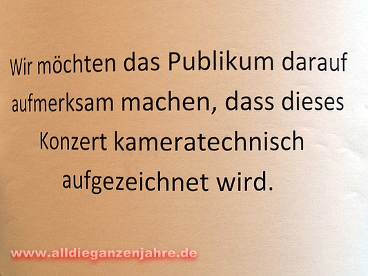| - Die Show begann mit Wölli und die Band des Jahres, bei allem Respekt vor Wölli, aber Schlagzeug konnte er besser. Einzig die beiden Songs mit Vom (2 drunken Drummers) und Campino (alles noch mal von vorn) konnten überzeugen. Aber Carsten tauchte bei Wölli erste Reihe mitte auf und hatte sichtlich Spaß da unten (rotes T-Shirt) - |