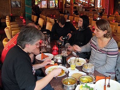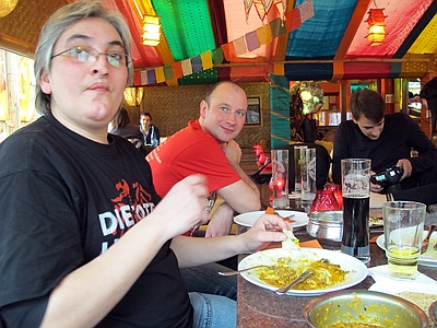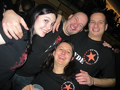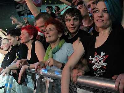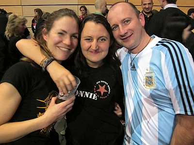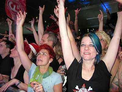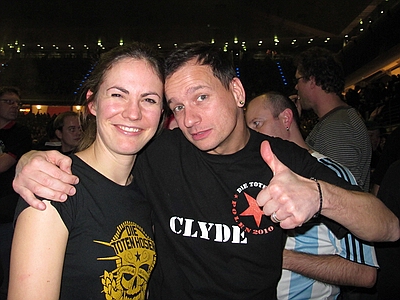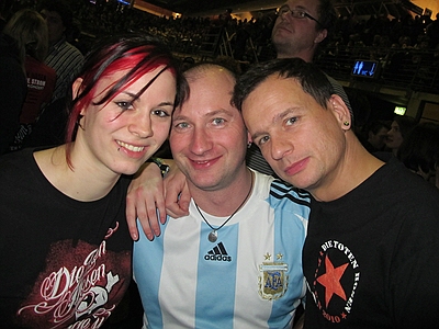 30.12.2012 Krach der Republik In Berlin war wieder das Problem des Babysitters für Alex gegeben, also teilten wir uns die Abende. Am ersten Abend war ich beim Konzert und Angela beim zweiten, somit gibt es nur Bilder vom ersten Abend. ![]() wir sind alte Punks - schweinealt pünktlich vorm Konzert besuchte mich ein schöner Hexenschuß. Ausgerüstet mit Wärmepflaster setzte ich mich also ins Auto und fuhr von Spandau nach Prenzl Berg in der Hoffnung vor der Max-Schemling-Halle zu parken. Diese befindet sich mitten in einem Wohngebiet und verfügt über keinerlei Parkmöglichkeiten. In einer kleinen Nebenstraße scheiterte ein Mercedes an einer viel zu kleinen Parklücke und ich setzte meinen nicht viel kleineren Audi mit viel Geschick in eben diese Lücke. Fußweg zur Halle: keine 100 Meter. Mein Rücken sagte danke. Also aufs ins Restaurant Bird, wo schon einige Boludos vorglühten und riesen Burger verdrückten. Nach einem kurzen Hallo und schnellem Bier, schloß ich mich den ersten Nervösen Chaoten an, die Panik hatten nicht mehr in den Innenraum zu gelangen und machte mich auf den Weg ins Gedränge. Es gab 3 Eingänge, vor zweien standen die bekannten Menschentrauben und beim dritten hatte sich eine schöne ordenltiche Schlange gebildet - was war denn da los? Egal, zickzackzuck und rein mit Druck. Dann so gleich in den Innenraum und dort einen Stempel bekommen, es war freie Platzwahl und wenn die Ordner sagen der Innenraum ist voll, dann heisst es ab auf den Rang. Letztlich fanden aber irgendwie alle den Weg nach vorn. Der Rücken hätte mich am liebsten auf einem Sitzplatz gehabt, aber ich dachte ich probiere es mal, schliesslich letztes Konzert für lange Zeit. Und mein 50. Hosen-Konzert! Die Broilers begannen und ich dachte, da ist ja das Gedränge noch nicht ganz so krass und marschierte von links nach vorn in die Mitte und ergatterte plötzlich einen Platz in der ersten Reihe - hervorragend und tolle Fotos - und wie sich herausstellte, das Beste für meinen Rücken, denn die ganze Zeit gabs Druck von hinten, was dem Rücken ziemlich gut getan hatte. Aber alles auf Anfang, vormittags trafen wir uns erstmal mit Paule aus Argentinien und machten einen kleinen X-Berg Rundgang mit abschliessendem indischem Essen, wo sich noch einige andere Boludos dazu gesellten. |