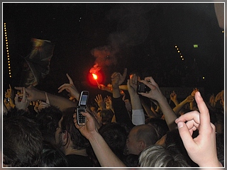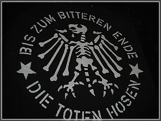 | Die Plätze in der ersten Reihe waren optimal, wir standen etwas versetzt links, direkt an den Boxen. Campino sprühte wieder vor Spielfreude. Bereits mit dem opener "Strom" war die Stimmung in der Arena am überkochen. Danach folgte | |