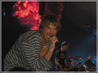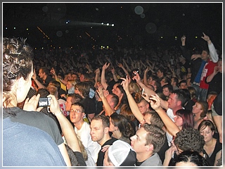 | Wir schafften es sogar noch die Vorband "Blind" zu sehen. Obwohl es bereits total voll und eng war, konnten wir uns zu Tine und andy in die erste Reihe vorkämpfen. Dort trafen wir auch noch extremo und seine Kumpels die so nett waren uns zur ersten Reihe durchzulassen. | |