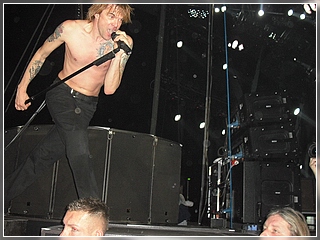 | Beim drittletzten Lied "Bayern" sprang Campino von der linken Box direkt in die Menge und uns. Ich habe mich zeitg ins Zentrum verdrückt weil ich noch ein wenig abfeiern wollte, Angela hatte das Vergnügen Campino zu fangen und von ihm geduscht zu werden. | |
