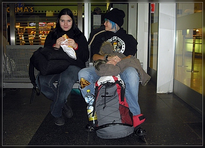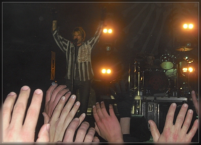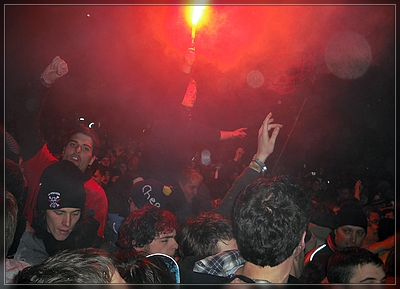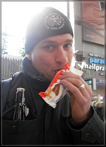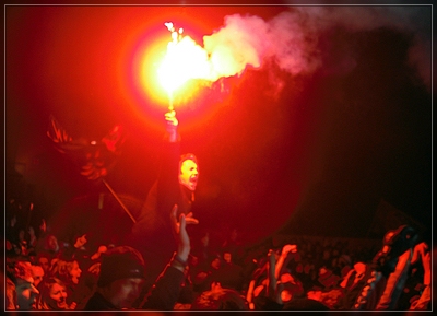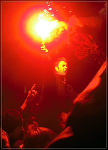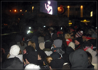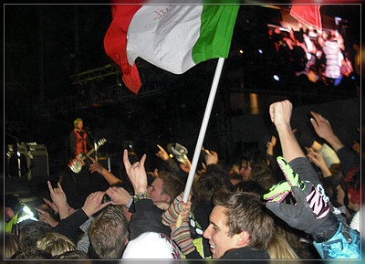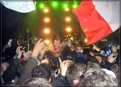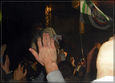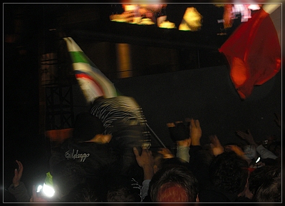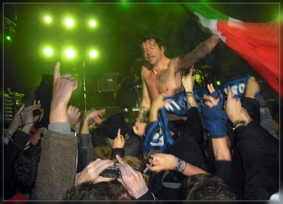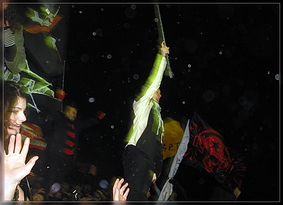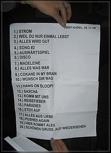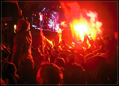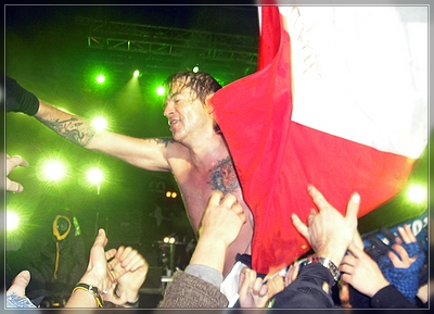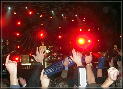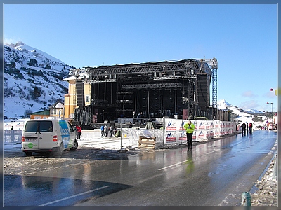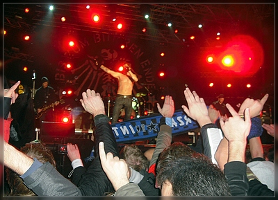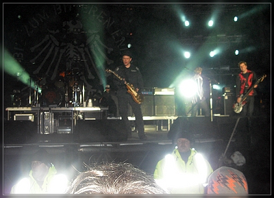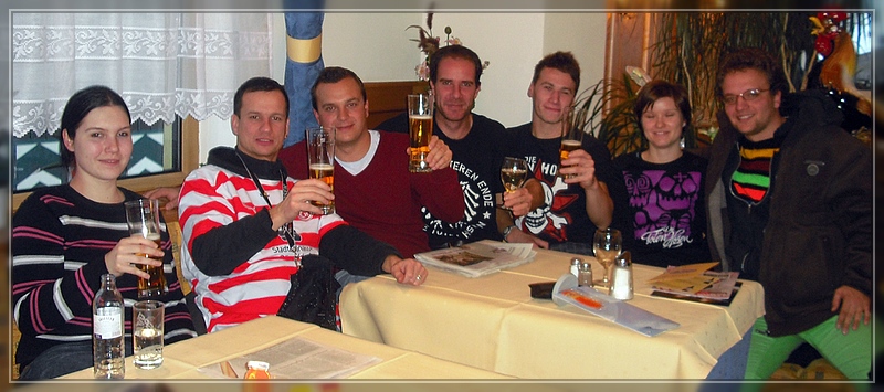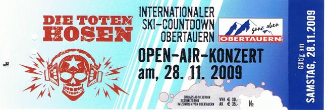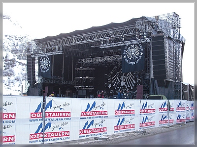 beim Ski-Opening in Obertauern (Österreich) Um 04:40 Uhr klingelte am Samstag der Wecker, denn um 06:17 Uhr ging die Bahn von Bamberg über Würzburg, Nürnberg, München, Salzburg nach Radstatt. Wenn sich jemand wundert, warum so ein Umweg, dann ist er damit nicht allein. Gruß an die Reiseleiterin ;-) ! In Bamberg stieg ich also mit der Reiseleiterin in den Zug und in Würzburg trafen wir dann Ara und Lucy. In München trafen wir dann noch einen alten Bekannten, Marco. So machten wir uns zu fünft auf den Weg nach Österreich. Nach dem der Waggon immer leerer wurde, begannen wir ein wenig zu singen. Unsere Gesangskünste sprachen sich schnell rum und die Jungs von der Polizei kamen zu uns. Komisch, die kamen gar nicht zum mitsingen. Also durften wir uns einer Personenkontrolle unterziehen, Personalausweise wurden eingesammelt und telefonisch abgefragt, ob nicht einer von uns ein potentieller Schwerverbrecher sei. Der Pullover von Marco war dann die Ursache für die Frage, "wer hat das Gras". Aber wir konnten die beiden Burschen überzeugen, dass unsere einzige Droge die Toten Hosen seien. Pünktlich um 13:30 trafen wir in Radstatt ein. Von dort waren es noch etwa 20km und der nächste Bus sollte in 2 Stunden fahren. Also sammelten wir noch 2 Mädels aus Wien ein und teilten uns ein Taxi für 40,00 Euro nach Obertauern. Als wir dem Fahrer während der Fahrt unser Hotel nannten, lachte dieser und erhöhte den Preis auf 45,00 Euro. Denn unser Hotel war nicht in Obertauern, sondern auf einer Alm, weit Abseits von Obertauern, auch hier wieder einen Gruß an unsere Reiseleiterin ;-) !!! Glücklicherweise kostete die Fahrt von der Felseralm nach Obertauern nur 16,00 Euro und da wir inzwischen noch auf Katrin und Martin sowie Christian trafen, waren das dann nur noch 2,00 Euro pro Nase. Nachdem sich alle warm eingepackt hatten, stiegen wir also ins Taxi um uns die Bühne und Obertauern anzusehen und den Nachmittag zum vorglühen zu nutzen. Wir gingen in eine Kneipe neben der Bühne, denn wirklich viel zu sehen gab es in Obertauern nicht. In der Kneipe wartete auch schon Heinzi und sein Kumpel Oliver. Die ersten standen übrigens schon am Einlass, grüße Euch alle, Respekt, dass ihr der Kälte so konsequent getrotzt habt. Es war jetzt 16:30 Uhr und rein durfte man dann ab 18:30 Uhr. Beginn sollte eigentlich 20:00 Uhr sein. Wir tranken ein paar Bier und entschieden uns gegen die Touristen-Speisekarte für einen ordentlichen Döner, wenn man schon mal in Österreich ist. Als wir dann gegen 18:30 Uhr Richtung Eingang liefen, war es ziemlich Eng da vorn. Aber wie bestellt, endschied genau in diesem Moment Fratze, dass der Eingang viel zu klein war und öffnete einen weiteren Teil des Zauns, so dass wir ohne groß anstehen direkt rein konnten. Wir sicherten uns Plätze vorn links und mussten dann erschreckend feststellen, dass in großen Buchstaben: Konzertbeginn 21:00 Uhr auf der Videoleinwand leuchtete. Es war inzwischen arschkalt. Ich hatte neben Skiunterwäsche, 2 paar Socken, Jeans, T-Shirt, 2 Pulli + Jacke auch 2 Mützen auf. Jedoch beschlossen wir in Bewegung zu bleiben und streunten übers Gelände, es war mal wieder der Wahnsinn wen man alles getroffen hat, die Eva, den Schweizer, Tina und Petra, Enrico nebst Freundin, die Anna und, und, und... habe jetzt mal wieder mehr vergessen als behalten. Sorry, aber ihr seid alle gegrüßt!!! Der Parkplatz auf dem die Hosen spielen sollten, machte auf mich den Eindruck, dass man mit etwa 2500 Leuten rechnen kann, es waren dann wohl 8000 und es war richtig eng. Egal wo man hinkam, man hatte immer mehr Mühe irgendwo durchzukommen. Ein Bier oder Glühwein zu bekommen, war ein richtiges Abenteuer. Bier gab es in Dosen und Flaschen, Jägermeister und andere Klopfer auch in Glasfläschen, somit machte eine Einlasskontrolle keinen Sinn und wurde auch nicht gemacht. Leider waren dadurch ein paar Amateure dabei, die das erste Mal einen Bengalo in der Hand hatten. Da sind mit die Geübten doch lieber. Wie eigentlich immer, begann punkt 21:00 Uhr das Intro und die Jungs legten mit Strom los. Inzwischen war ich auch vorn in der Mitte angekommen und es war kein bisschen mehr kalt. Die Setlist war sehr nett, "Alles wird gut", "Kein Alkohol" und "Kommt mit uns" rundeten dass Standart-Programm ab. Campino verteilte wie wild Glühwein und Noppa wurde angewiesen mal reichlich Bier in die Menge zu geben, also tat er seine Pflicht. Steve unterstützte ihn und es wurden reichlich Paletten in die Menge geworfen. Über das Publikum kann ich mich im Gegensatz zu vielen anderen nicht beschweren - hatte eigentlich immer Spaß, in der Mitte war alles wie immer. Nach dem Konzert wollten wir wie alle anderen auch in die Kneipe "Nanu", logischerweise war die total überfüllt und wir landeten in einem benachbarten Pub. Da war die Musik aber ziemlich öde und die meisten hatten keinen Bock mehr irgendwie. Aber der unendliche Charme von der bezaubernden Jeannie überzeugte den total peinlichen Kellner von der Tekkno-Kacke auf Rock umzuschwenken und begann sogar mit "Strom". Da waren dann alle erst mal wieder wach und es wurde auch kräftig mitgesungen. Irgendwann wollten wir aufbrechen und brauchten ein Taxi, auf der Rufnummer, die wir auf der Hinfahrt bekamen ging keiner ran, die Taxis draußen rauschten nur an uns vorbei und wir beschlossen ein wenig Richtung Tal zu laufen. Doch auch dort hielt kein Taxi mehr für uns an. Sabine schaffte es irgendwie den Taxifunk ans Ohr zu bekommen und bekam die Auskunft, dass es mindestens eine Stunde dauern würde. Also liefen wir weiter, waren ja maximal 12 Kilometer Bergauf. Die Gruppe wurde immer zerstreuter und als ich endlich das rettende Taxi hatte, mussten wir erst mal die anderen einsammeln, bei jedem Stopp kamen unzählige Leute aus irgendwelchen Ecken, die mit ins Taxi wollten, Wahnsinn, wir brauchten bald ´nen eigenen Sicherheitsdienst. Einen konnten wir nur wieder zum aussteigen bewegen, als wir ihm erzählten wir fahren in die