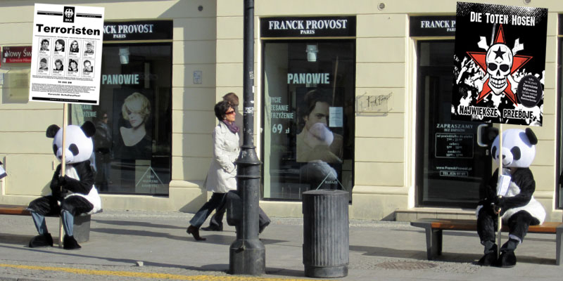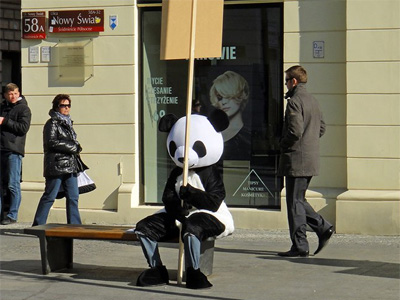 - Nach der Wahnsinns-Nacht in der Karaoke-Bar wurde ich mitten in der Nacht um 11:30 Uhr von der Rezeptions-Dame geweckt: "Who is Daniel?" schallte es durch den Raum und die vergangenen Stunden im Hostel schossen durch meinen Kopf... Staubsauger, Schusta, Schlagstock-Bullterrier, zerstörte Betten, Polizei... mist, jetzt war es wohl so weit und wir durften ausziehen, aber weit gefehlt, nur Besuch an der Rezeption der mich zu sprechen ersuchte. Tatsächlich hatten wir gestern einen Aushang an der Rezeption, 2 Tickets für die Hosen zu verkaufen, und die wurden nun verkauft. Anschliessend ging es auf Beer äh Sightseeing. Auf dem Weg in die Stadt entdeckten wir VOM in einem Panda-Kostüm... - |