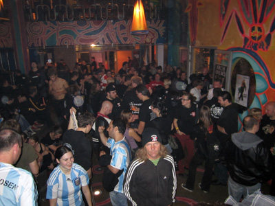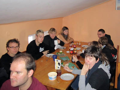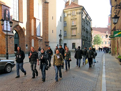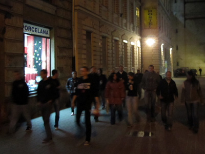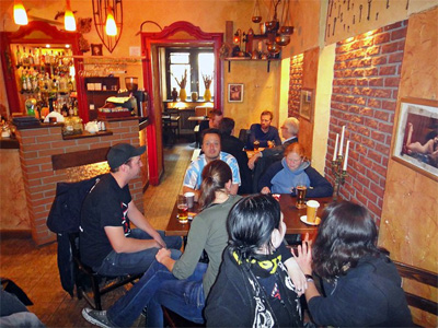 - Am frühen Abend machte sich die komplette Hostel-Belegung gesammelt auf den Weg zum Klub Stodola. Im Gegensatz zu den ersten Abenden in Polen und dem Vorabend lief es diesmal sehr gesittet zu, da waren wohl die ersten müde oder schon gesättigt. - |