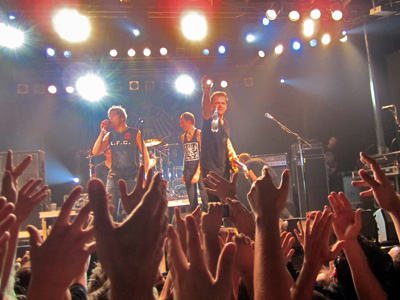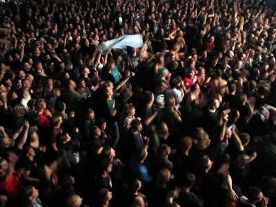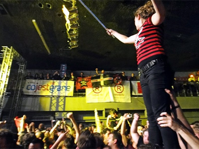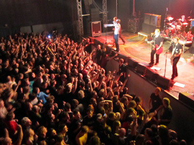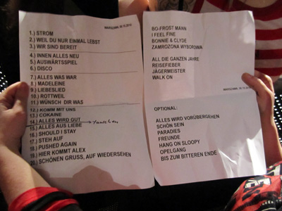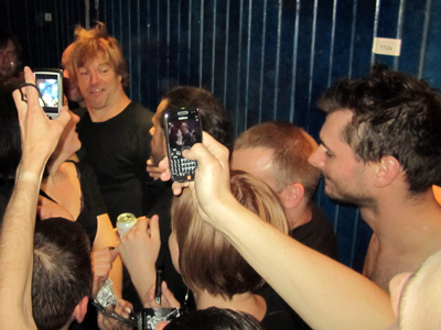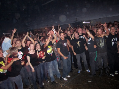 - Ich habe Schmerzen im Kreuz, wenn ich aufstehen will. Die Achillesferse tut mir weh. Und das Einzige, was nicht kaputt an mir ist, sind die Brücken in meinem Gebiss. Ich bin ein alter Mann, schweinealt! Nur ein alter Punk, viel zu alt! Schweinealt! nach diesem Motto liessen es Sven und ich etwas Ruhiger angehen und genossen das Konzert zum Teil im Nebenraum auf der Leinwand - |