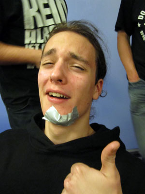 kleine Verletzungen wurden direkt mit original Toten-Hosen-Roadcrew-Panzerband versorgt |