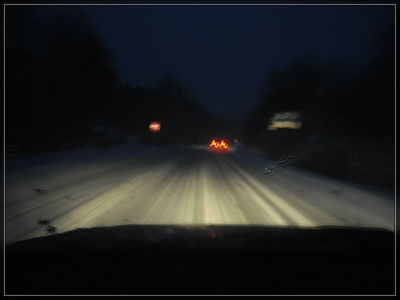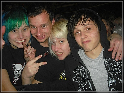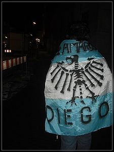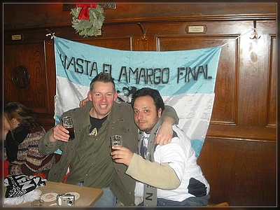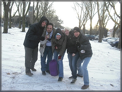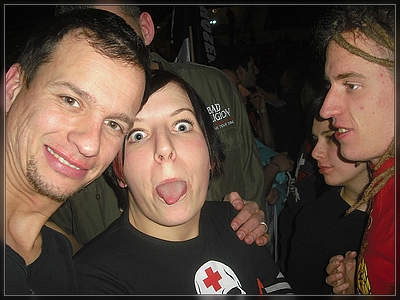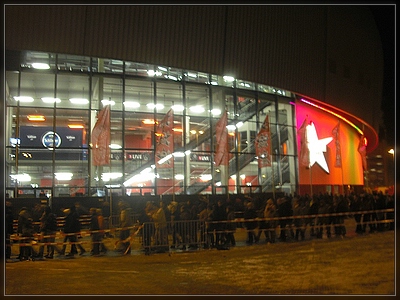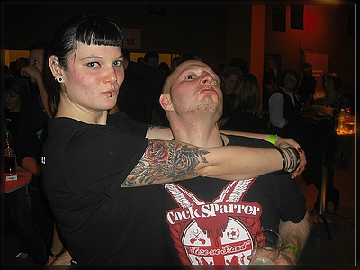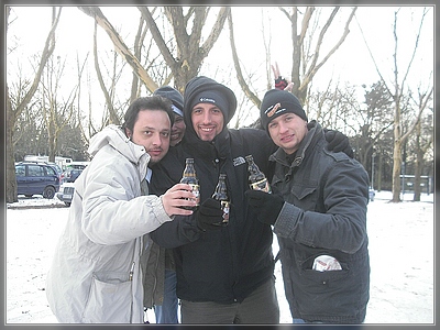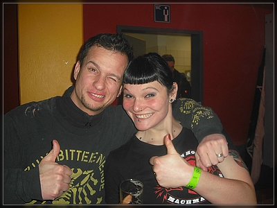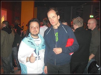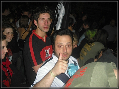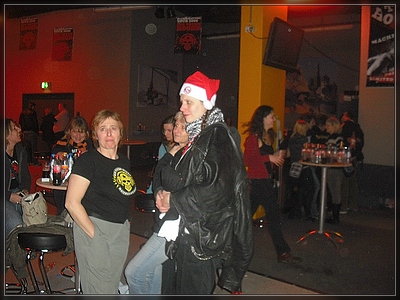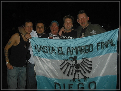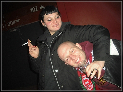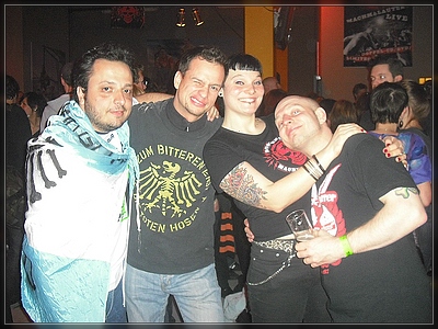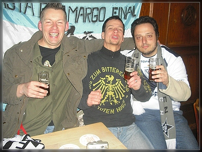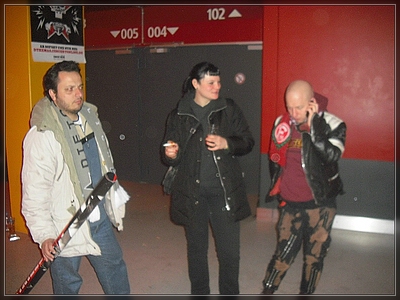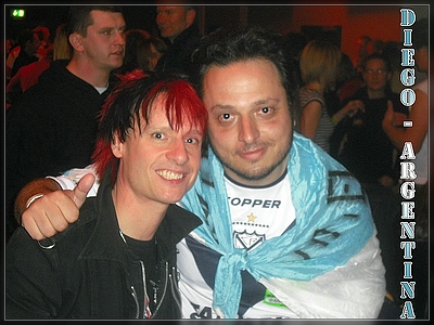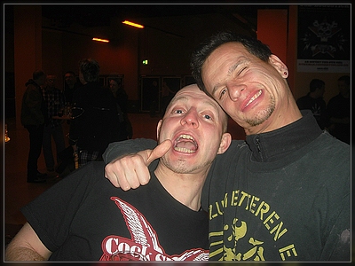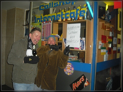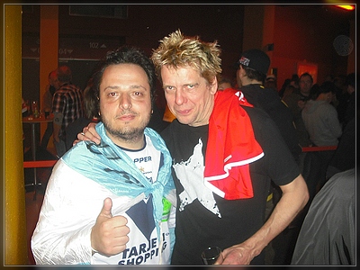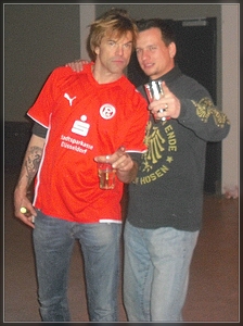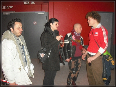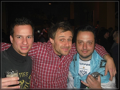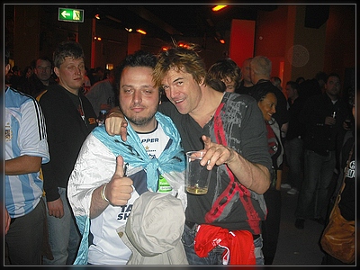 Nach dem Konzert wurde Diego auf die Aftershow-Party eingeladen. Ich wartete draußen mit den anderen und Diego´s Jacke. Wir sollten dann die Halle verlassen, Problem war natürlich die Jacke von Diego. Aber der Sicherheitsdienst war recht kulant und ich durfte Diego die Jacke bringen. Danach gings mit Diego, Fichli, Anneliese und Ken im Pornotaxi in die Altstadt ins "Engelchen". Dort trafen wir den Rest unserer Reisegruppe, also Sabine, Ronni und Lucy. Dort wurde noch kräftig gesungen und dann im Taxi zum Südfriedhof um dann mit meinem Auto nach Alsdorf zur Herberge "Zur Rennbahn" zu fahren. Gefahren war Sabine, die dann auch so nett war das Fenster offen zu lassen. Die Luft am nächsten Mittag war toll im Auto und der Schnee auf dem Fahrersitz hat für die nötige coolness gesorgt, die ich auf meiner 8-Stündigen Rückfahrt durchs Schneechaos benötigt habe.