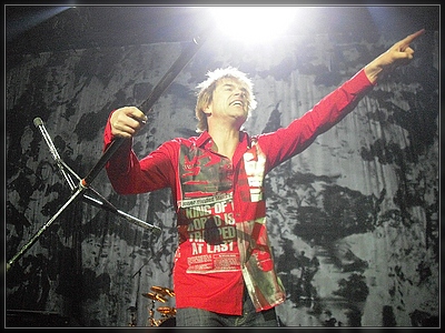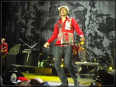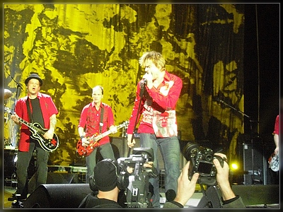 Diego ergatterte einen Platz in der ersten Reihe fast in der Mitte, ich verbrachte das Konzert direkt in der Mitte immer zwischen zweiter und vierter Reihe. Die Donots machten den Support und Ingo rockte gut ab. Leider viel zu kurz, aber wir waren ja wegen der anderen Band da. Die Hosen begannen mit Wünsch Dir was und ein paar Weihnachtsklassikern (Setliste findet ihr ganz unten). Da der Chorus des Publikums bei "Liebeslied" mal wieder nicht ausreichend war, ermahnte Campino die Leute, schliesslich wäre das Düsseldorf und es gibt ein paar Leute die einen weiten Weg gemacht hätten, zum Beispiel Schweiz und Argentinen, er entdeckte Diego mit seiner Fahne in der ersten Reihe und sprach ihn an: "que tal?" (wie gehts?), nahm Diego´s Fahne und hängte sie über das Schlagzeug. Hier auf dem Video zu sehen: