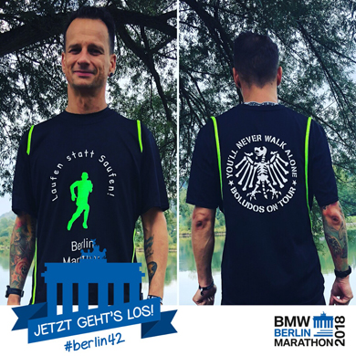 Mein erster Marathon Es war der 1.11.2017, der 17. Geburtstag meines Sohnes Sebastian und ich lag mit Bierlaune im Bett. Meine Fussball-Laufbahn war lange beendet und ich lief gelegentlich 10 km und startete bereits 2016 bei der Kurzdistanz des Münchener Marathons. Der Einlauf nach den 10km ins Stadion war ein tolles Erlebnis, aber auch schnell wieder vergessen. Dort traf ich einen Arbeitskollegen, der für die volle Distanz gemeldet, aber leider verletzt war. Ein Jahr später traf ich ihn wieder und wir unterhielten uns über das Laufen. Er erzählte mir, dass er sich bereits 3x für den Berlin Marathon angemeldet, aber bisher kein Losglück hatte. Losglück? OK, 44.000 Läufer können wohl starten und es gibt mehr als 250.000 Anmeldungen. Das alles ging mir also durch den Kopf, als ich meine Daten ins Handy tippselte, klar nehm ich ein Finisher-Shirt und alles andere was es so gibt, zack 160,00 € auf der Kreditkarte, die aber nur belastet wird, wenn ich Losglück habe, kann ja nix passieren, dachte ich... |