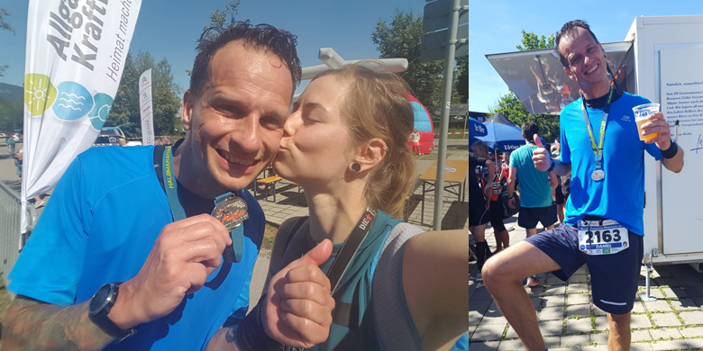 tatsächlich, am 12.08. fand der Allgäuer Panorama-Marathon statt. Das Allgäu ist ja nun ein Teil der Alpen, somit muss wohl auch mit Bergen und entsprechenden Höhenmetern gerechnet werden. 200 Höhenmeter standen in der Ausschreibung, diese auch fast am Stück, der Rest ist ziemlich flach. Klingt gut, meinen Trainingshalbmarathon habe ich in 2:07 absolviert, ohne Höhenmeter, also ging ich hier von einer Zielzeit von 2:15 aus. Ich lief sehr flott, hatte aber immer die Höhenmeter im Hinterkopf, die ich vor dem Wendepunkt erwartete. Die Strecke vor der Wende verlief durch einen Wald, es war schön schattig und ich dachte, hey man merkt im Wald die Höhenmeter kaum. Naja, die Höhenmeter kamen dann natürlich erst nach dem Wendepunkt, denn ich stand plötzlich vor einem Berg, den die meisten, wie ich dann auch im Walking-Style erklommen. Aber was Bergauf geht, geht auch wieder Bergab und die Zeitverluste beim Aufstieg, konnten in einem langgezogenen Gefälle wieder reingeholt werden. Am Ende waren es dann doch respektable 01:52:23 bei tollem Wetter. Eine wirklich schöne Veranstaltung mit anschließendem freien Eintritt im Spaßbad Wonnemar. |