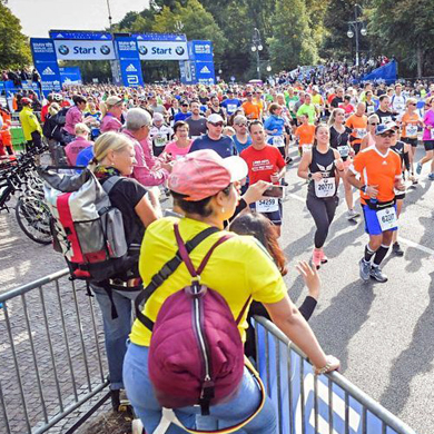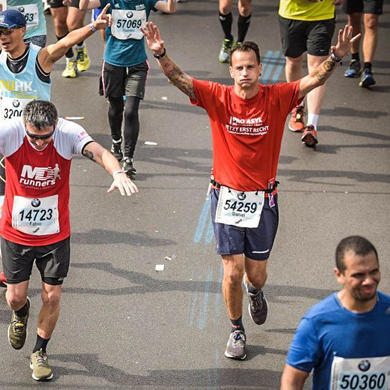 Mit bester Stimmung setzte sich die Mennschenmasse im letzten Startblock - um die 10.000 Läufer - pünktlich um 10:15 Uhr in Bewegung. Der Sieger und Weltrekordläufer Eliud Kipchoge war zu diesem Zeitpunkt schon bei KM 21 angekommen. Ich hatte mir vorgenommen nicht zu schnell zu starten, war aber auch gar nicht möglich, bei so vielen Läufern. Ich muss etwa 17.000 Läufer überholt haben, wenn ich die 10.000 aus meinem Startblock von den 44.389 abziehe und als 17.881 ins Ziel gekommen bin. Neben dem Hauptziel den Marathon zu finishen, also 42,195 km zu laufen, wollte ich dies unter 4:00 Stunden tun. Ich hielt dementsprechend auch die ersten 20 km die entsprechende Geschwindigkeit, fühlte mich wohl damit und war von den ganzen begeisterten Zuschauern überwältigt. |