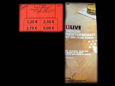 Liverpool-Trikot im SecondHand in London 18,00 Euro eine Nacht im ETAP Hotel mit Dixie-Klo 36,00 Euro Sixpack Becks im Netto 3,44 Euro Die Hosen im Bistro beim James - unbezahlbar Es gibt Dinge die kann man nicht kaufen - Danke James, Carsten und Mama Sabine!!! Die Einslive Thekenmeisterschaft - Eine Tippgemeinschaft im Bistro bei James in Düren ermöglicht ein Hammerkonzert im kleinen Rahmen - 320 Leute und ein paar auf dem Dach!!!! ![]() noch mehr feine Bilder von dem Abend hier in der Galerie |
