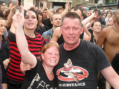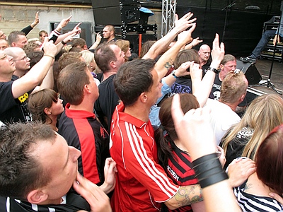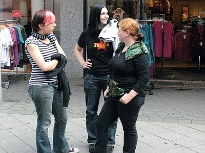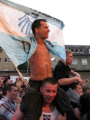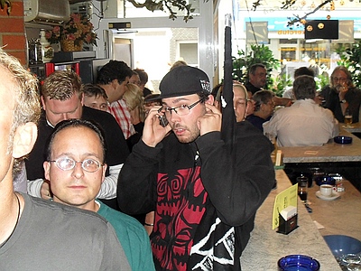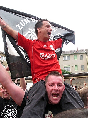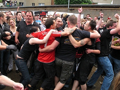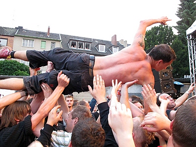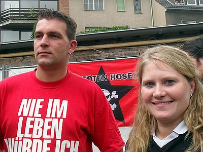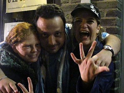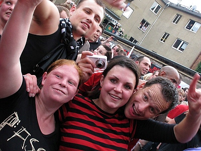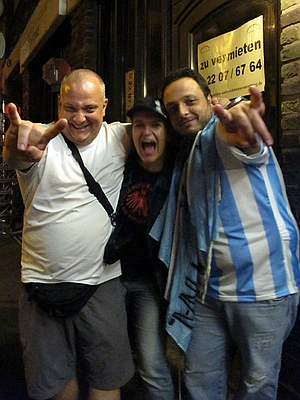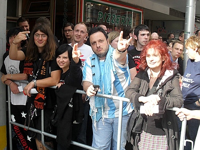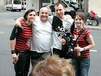 Beim verlassen des Etaps checkten gerade Dunja und Eddie ein, herzliche Grüße!!! Glücklicherweise war der Alsdorfer-Hosen-Fan-Transporter in der Nähe und ich konnte direkt vorm James aussteigen, wo bereits die üblichen Verdächtigen vor dem Eingang warteten, es muss so gegen 14:00 gewesen sein. Gemäß dem Motto "Komm mit uns - verschwende Deine Zeit" zogen wir durch die Dürener Innenstadt auf der Suche nach Nahrung und ner gemütlichen Kneipe. Nette Leute brauchten wir nicht suchen, die kamen von selbst. |